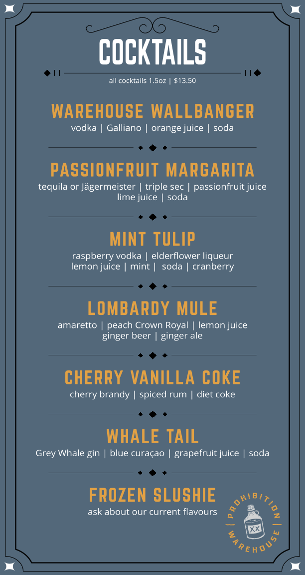 Whether it’s a casual outing or a special celebration, The Prohibition Warehouse promises satisfaction and unforgettable moments for every guest.