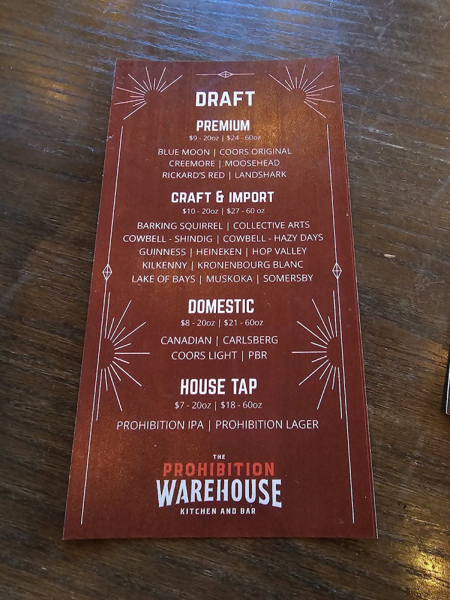 Welcome to The Prohibition Warehouse, a vibrant culinary haven located at 56 King St N, Waterloo. This delightful venue combines a lively atmosphere with diverse menu offerings. The reviews speak volumes: patrons rave about the unforgettable flavors and reasonable prices that cater to all appetites.